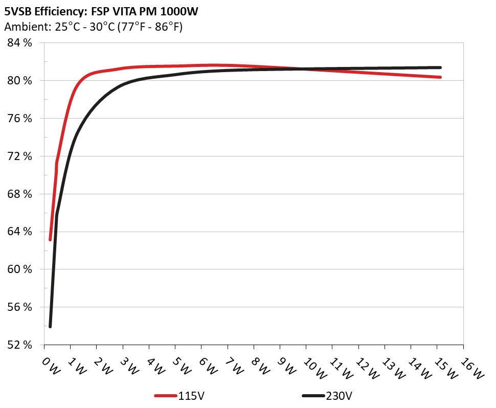 This graph depicts the efficiency levels of the 5VSB rail with 115V and 230V input