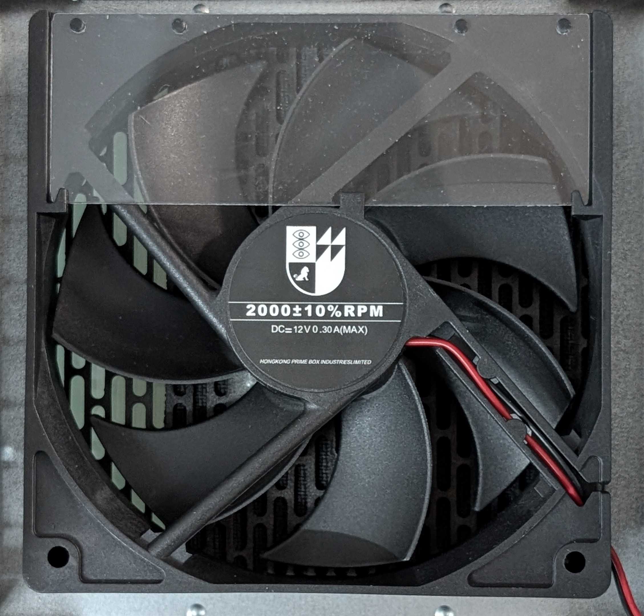 | Fan Model | HongKong Prime Box Industries Limited 12025 (120mm, 12V, 0.30A, Fluid Dynamic Bearing Fan) |