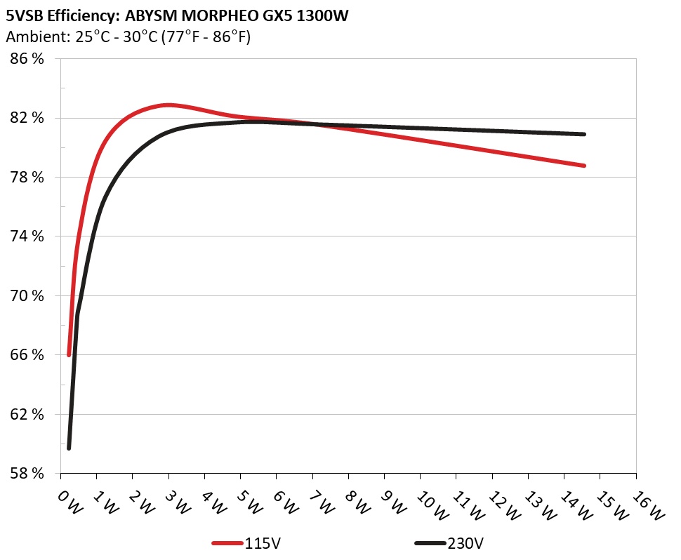 This graph depicts the efficiency levels of the 5VSB rail with 115V and 230V input