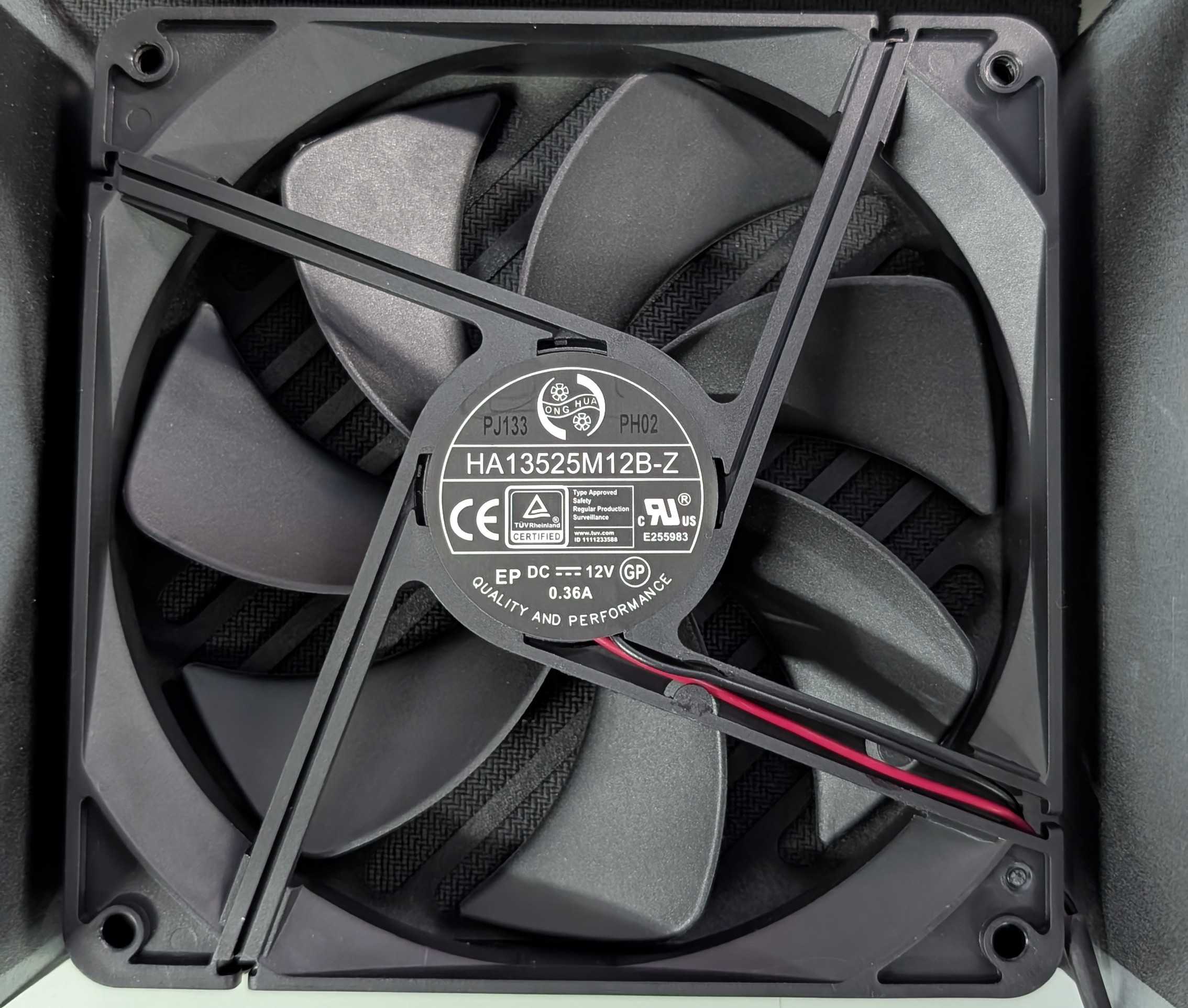 | Fan Model | Hong Hua HA13525M12B-Z (135mm, 12V, 0.36A, Dual Ball Bearing Fan) |