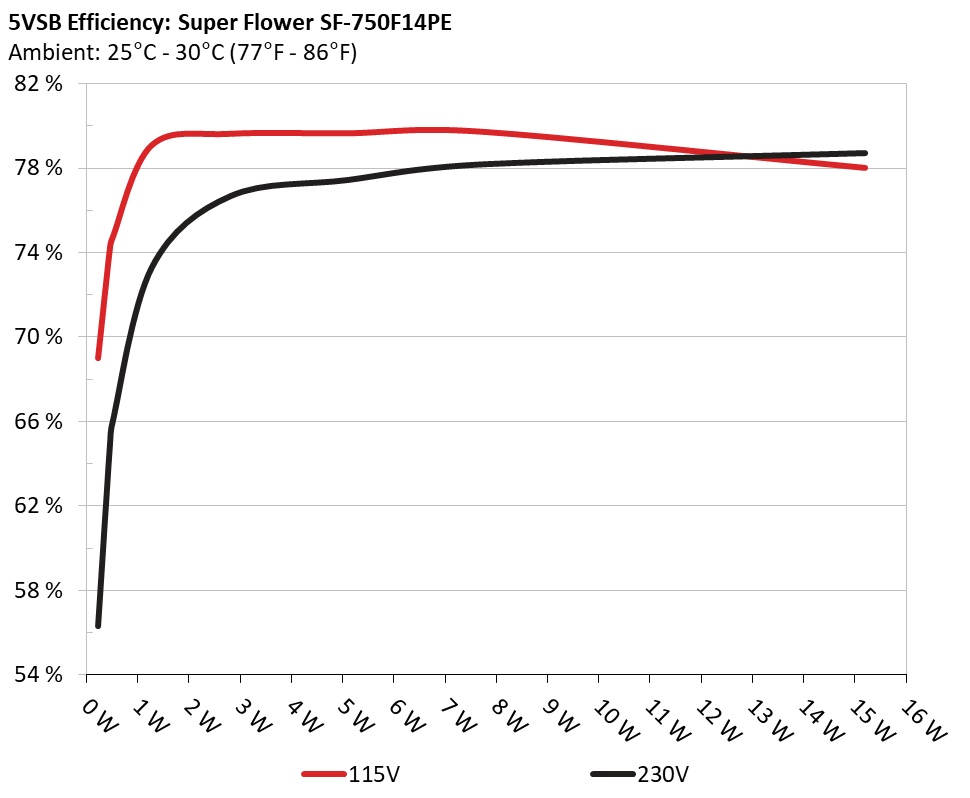 This graph depicts the efficiency levels of the 5VSB rail with 115V and 230V input