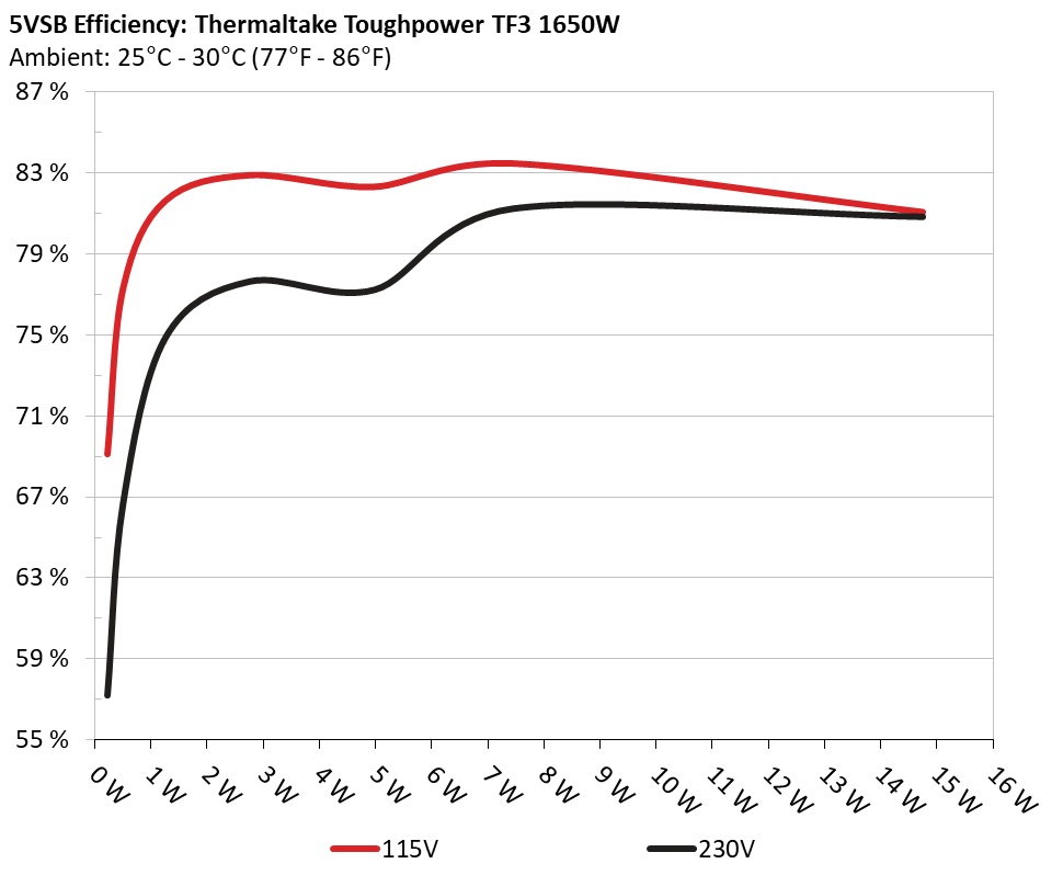 This graph depicts the efficiency levels of the 5VSB rail with 115V and 230V input