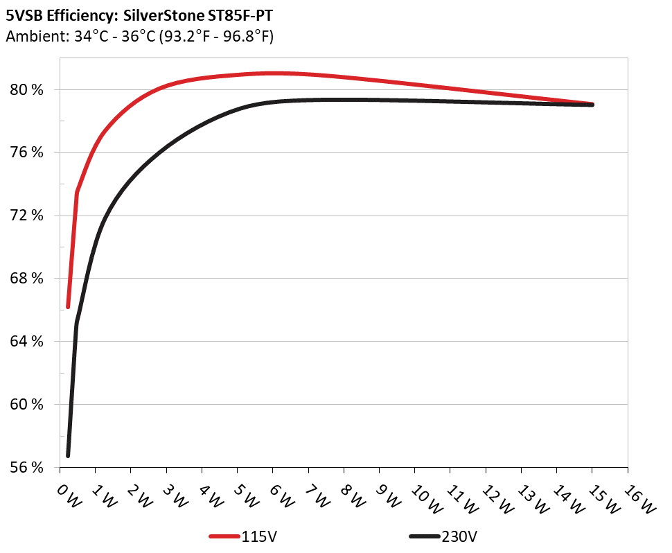 This graph depicts the efficiency levels of the 5VSB rail with 115V and 230V input.