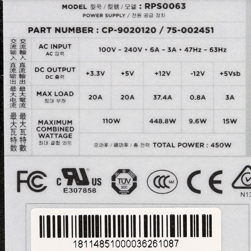 | Hold-up Cap | Nippon Chemi-Con (450V, 220uF, 2-3,000h @ 105°C, KMM) |