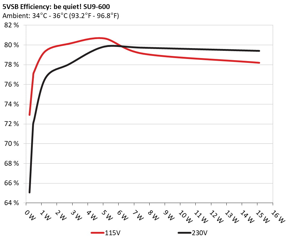 This graph depicts the efficiency levels of the 5VSB rail with 115V and 230V input.