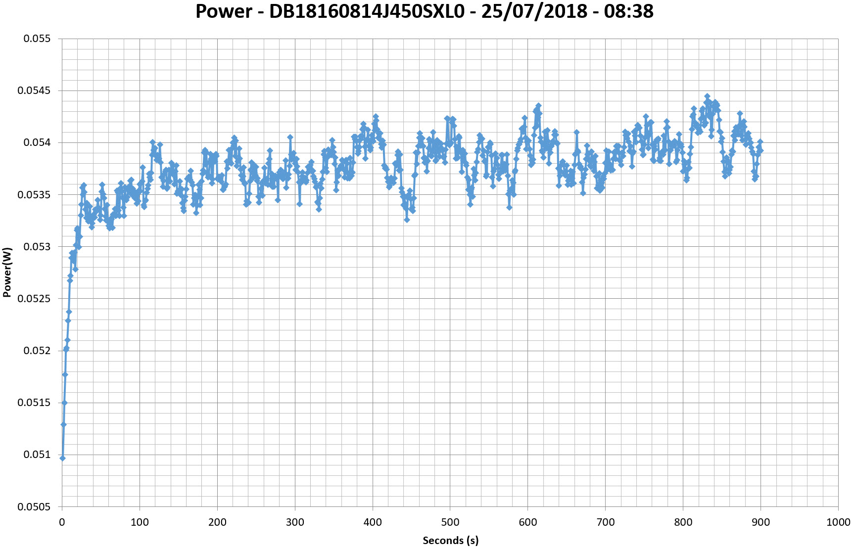 This graph is generated by the PPA Standby Power Analysis software which takes full control of the power analyzer during the whole procedure. This application features all of the EN50564 & IEC62301 test limits for standby power software testing.