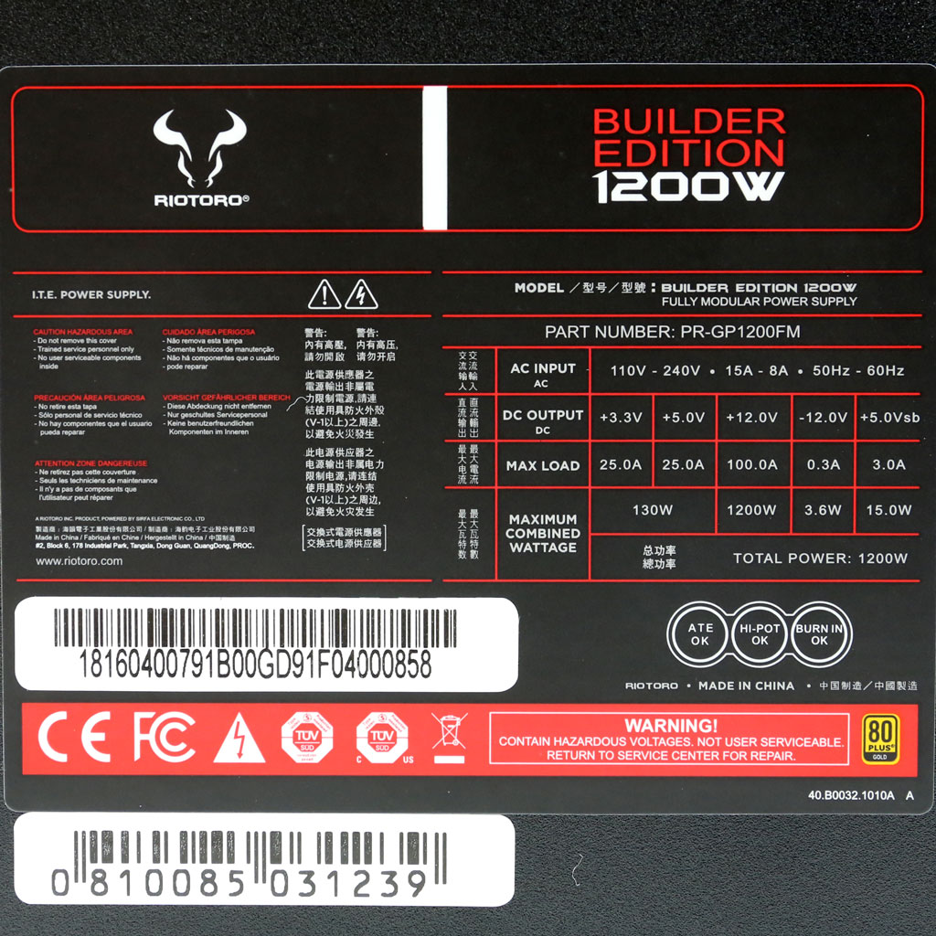 | Hold-up Cap(s) | 2x Nichicon (400V, 560uF, 2000h @ 105 °C, GG) |