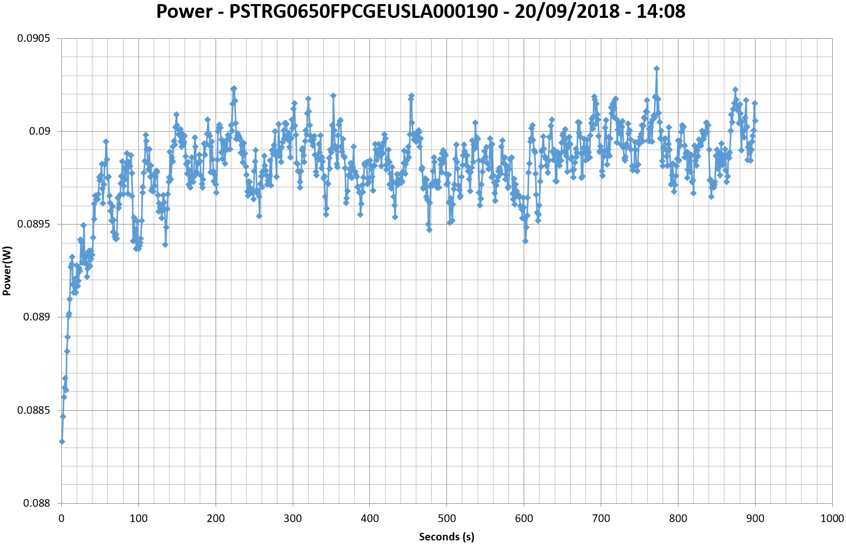 This graph is generated by the PPA Standby Power Analysis software which takes full control of the power analyzer during the whole procedure. This application features all of the EN50564 & IEC62301 test limits for standby power software testing.