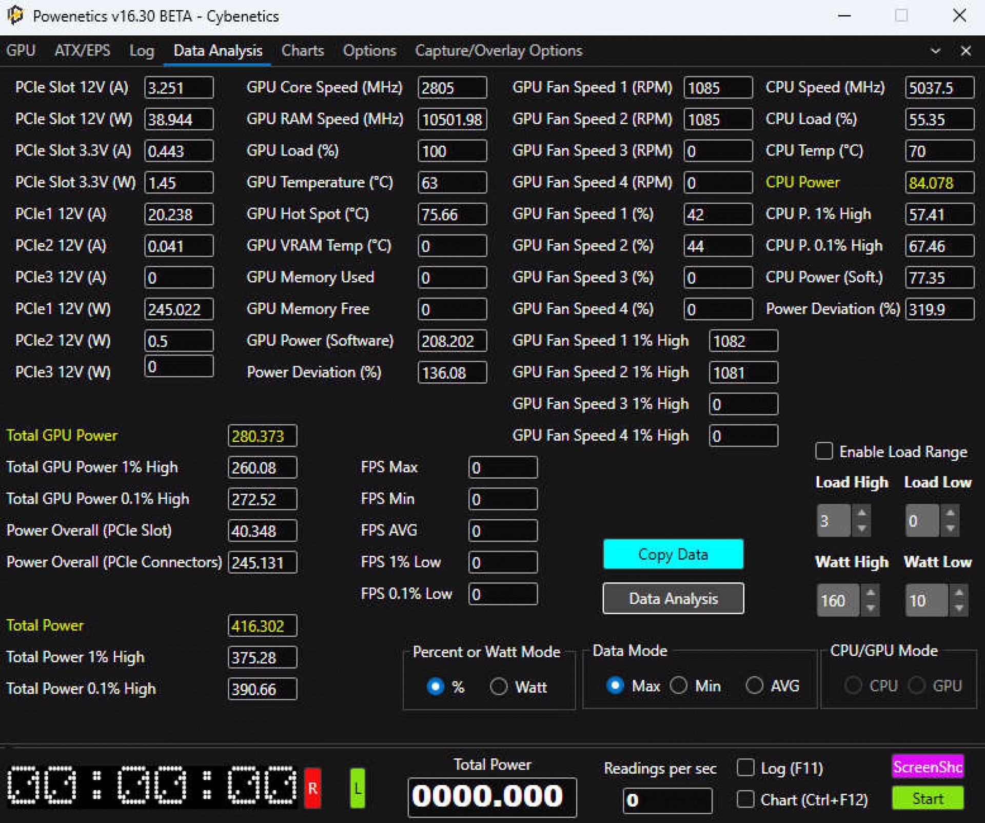 The Cybenetics GPU database uses data deriving from Powenetics, mostly the first version, which relied on parts found on the market and not custom-designed ones. This is why the first Powenetics was a huge pain to build, and we couldn’t support it as much as we wanted. Moreover, although it was faster than NVIDIA’s PCAT, much faster, it was still far below 1000 readings per sec (or one reading per ms), and we had to do something about it!